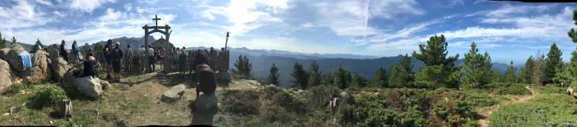 Et le temps. Le temps qui se distend. Cette parenthèse qui semble avoir duré une semaine. Ce temps qui s’arrête. Qui se suspend. C’est toi. Toi avec un grand T. Je sais que t’as fait exprès. Pendant cette communion, en plein air, le soleil, le décor, la Paghjella, la licorne, Le Faucon, ou l’aigle, enfin le grand truc qui faisait des cercles au dessus de l’autel, tout y était. Alors tu me l’as envoyé. Le signe. Alors que toi et moi on savait que c’était pas possible. Tu l’as fait. Et toi et moi on sait que c’est toi. Parce que dans la vraie vie les miracles ça n’existe pas. Enfin pas ceux-là. Ou alors c’était pas la vraie vie… Ou bien tu existes vraiment. Je ne dis pas qu’à partir de maintenant je vais te voir partout et dans tout, je dis juste qu’à cet instant précis j’ai su. Et pour me souvenir j’ai même rapporté une branche bénite. Je ne te cache pas que depuis je vois un peu des signes de ton existence une peu partout… Le lien coulissant sur les sacs poubelles. l’ouverture facile en bas des paquets de Princes… Le pain de mie sans croute… Le radar de recul… Tu vois que tu existes. On a même plus à tourner la tête. Les sacs à glaçons! Ouais ceux qui fonctionnent, que quand tu les ouvres tous les glaçons viennent d’un coup. Le candyup. Bon, là tu pousses le génie jusqu’à nous faire des briquettes de la taille parfaite pour la main de l’enfant qui devient parfaitement autonome le dimanche matin, t’avoueras que ça ne peut QUE être dû à l’intervention du divin… La crème solaire en aérosol… Tu vois. Tu es partout au final. Ou alors tu as des équipes marketing hyper au taquet… Ou les deux. Mais je m’en fous. Et si c’est vraiment toi, et si tu veux que je persiste à le croire, n’hésite pas à en envoyer d’autres. Je veux dire des vrais SIGNES. Ceux comme avec le Faucon… Tu vois ce que je veux dire. Ceux là. Parce que j’ai tendance à croire ce que je vois… comme ton pote saint Thomas. Et sinon… Je voulais te dire que même si tu t’arrêtes là, et ben je t’en voudrais pas. Et je te dis même merci. Même si tu continues pas. Merci déjà d’avoir mis tout ça sur mon chemin. Parce que sans vouloir crâner, tu m’as plutôt comblée. Comme dirait Céline, La vie m’a tellement gâtée j’ai plutôt du mal à l’éteindre… Alors si c’est pas toi, ben je suis une fille qui a quand même vraiment de la chance. Parce que la vie est jolie et drôle. Plus exactement MA vie est jolie et drôle, y’ a de jolies surprises, même si parfois elles ont un revers (un putain de revers même), mais je préfère les prendre et les avoir vécues que de passer à côté. Alors Merci pour tout. Tout ça et tout le reste. Merci de m’avoir faite comme je suis, et de m’avoir entourée de ceux là. Merci de prendre soin de nous comme ça. Parce que malgré les accrocs, le bonheur est partout.